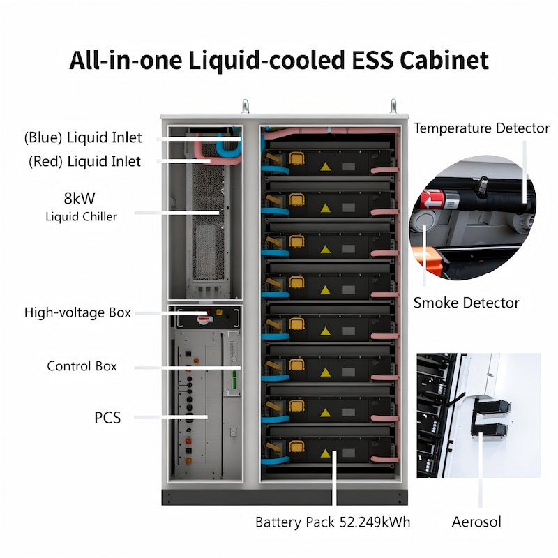 Questo armadio ESS "tutto in uno" combina una batteria al litio ferro fosfato ad alta densità da 418 kWh, un convertitore bidirezionale (PCS) da 210 kW e incorpora BMS, EMS, controllo della temperatura a liquido, protezione antincendio e struttura di protezione esterna IP55. Rappresenta una soluzione completa di accumulo di energia ad alta efficienza per applicazioni industriali e commerciali, integrazione fotovoltaico-accumulo e servizi ancillari di rete.